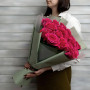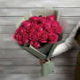 На фото 17 малиновых роз. В составе: роза 17 шт, дизайнерская упаковка 1 шт, атласная лента 2 шт, . Все цветы свежие и ароматные, букет красиво оформлен и отлично подходит для подарка. Доступна доставка цветов или самовывоз.