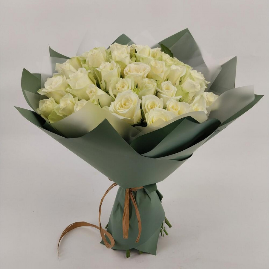На фото букет из 41 белой розы. В составе: роза 41 шт, дизайнерская упаковка 1 шт, атласная лента 1 шт, . Все цветы свежие и ароматные, букет красиво оформлен и отлично подходит для подарка. Доступна доставка цветов или самовывоз.